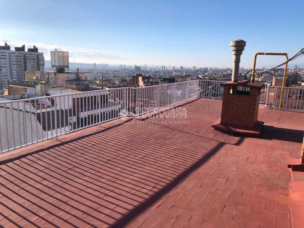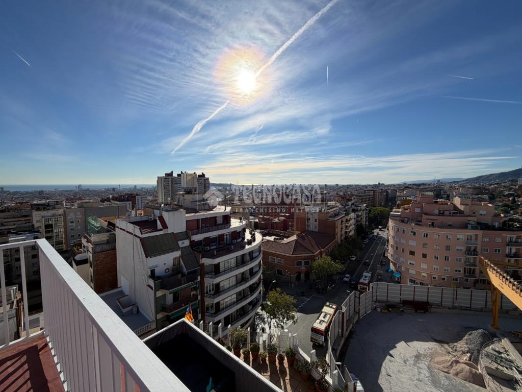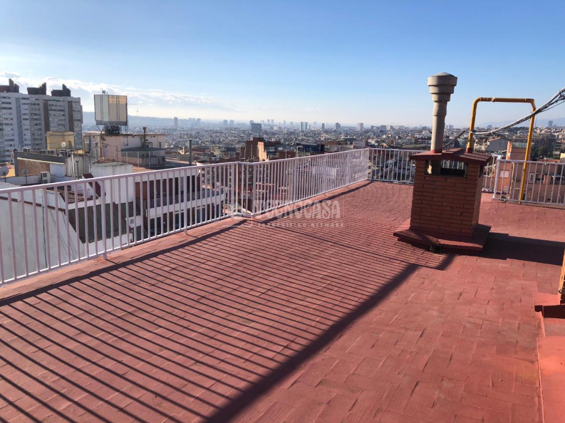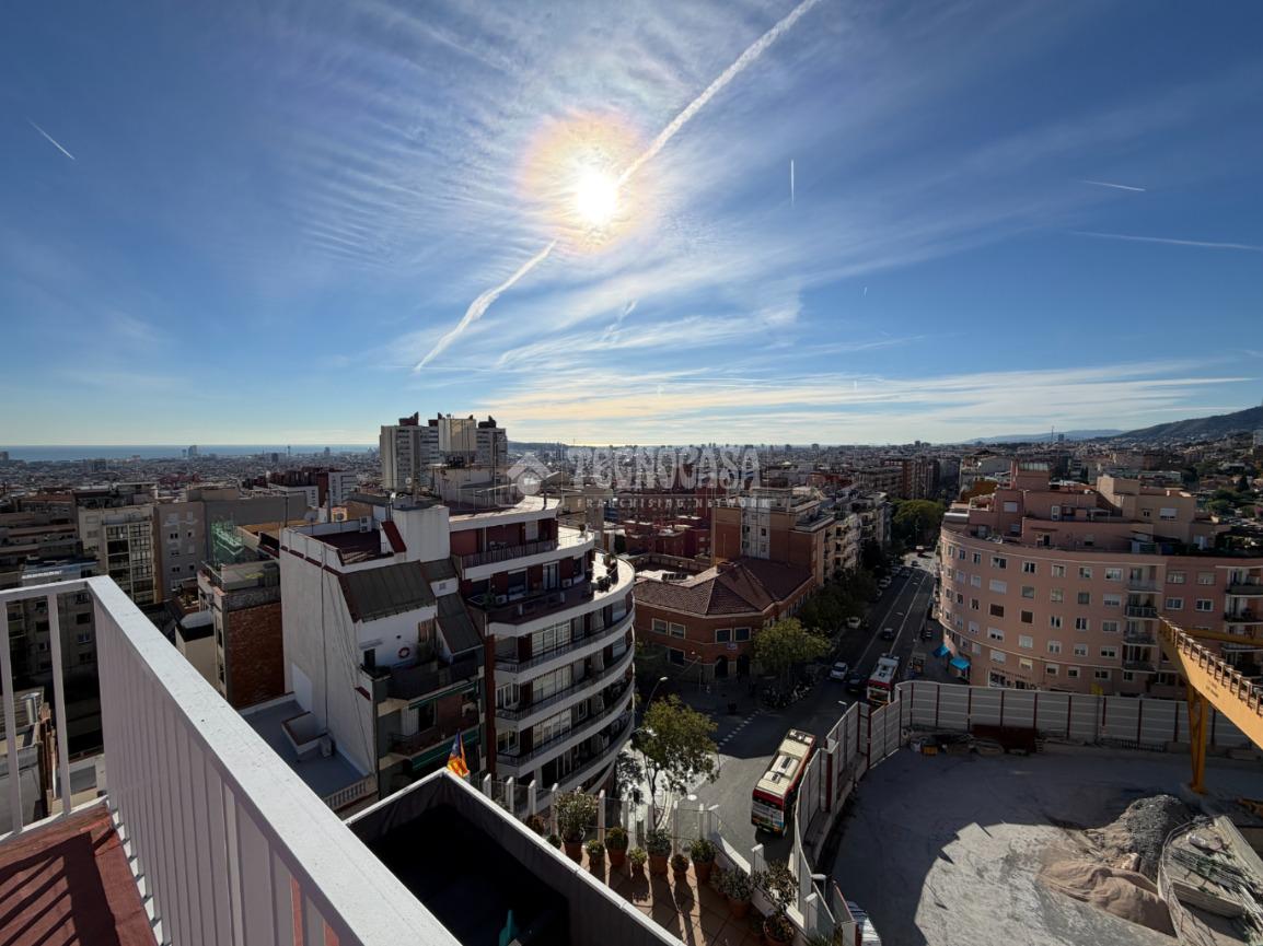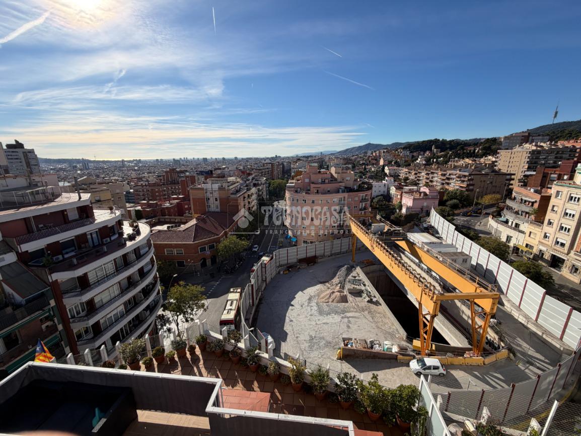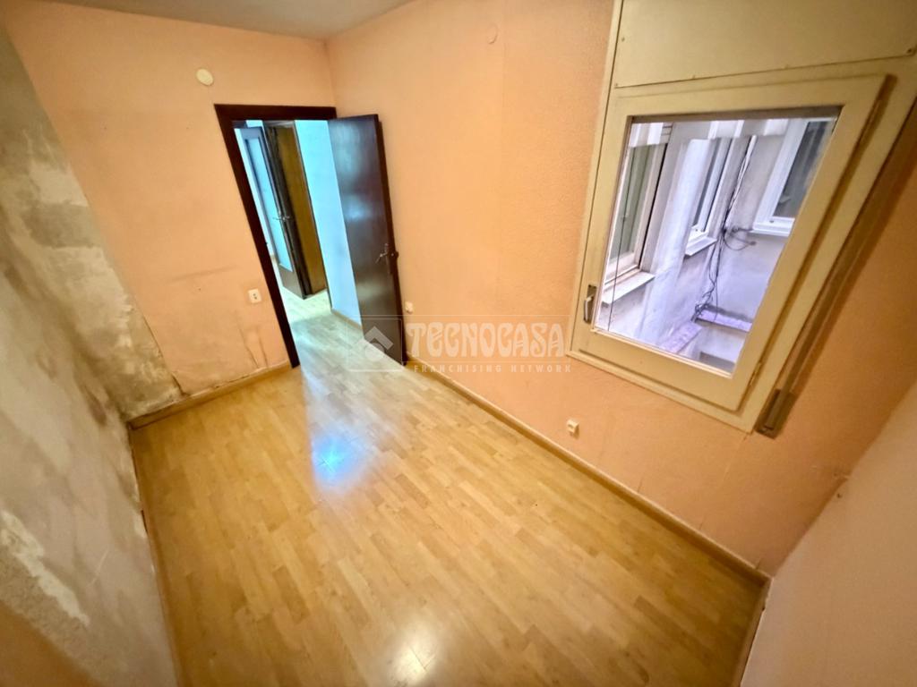PL. SANLLEHY: Piso de 4 dormitorios (1 doble, 3 individuales), comedor amplio, cocina con galería, 2 baños completos y balcón exterior con buenas vistas a la plaza. Orientación Suroeste, muy soleado y con vistas a la Plaça Sanllehy. Precisa actualización.